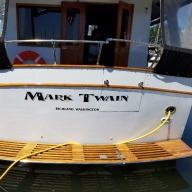 The Mark Twain is a 44 ft Trawler that was built in 1982 by C&L boat works and is powered by two 129HP Volvo Penta Diesels. It has modern electronics and navigation. We have gone through it from top to bottom. Nothing has been left un-inspected, repaired or replaced as necessary. It is a sturdy vessel and we are ready to go. Its top speed is only 8 knots. So we really can’t be in a hurry.